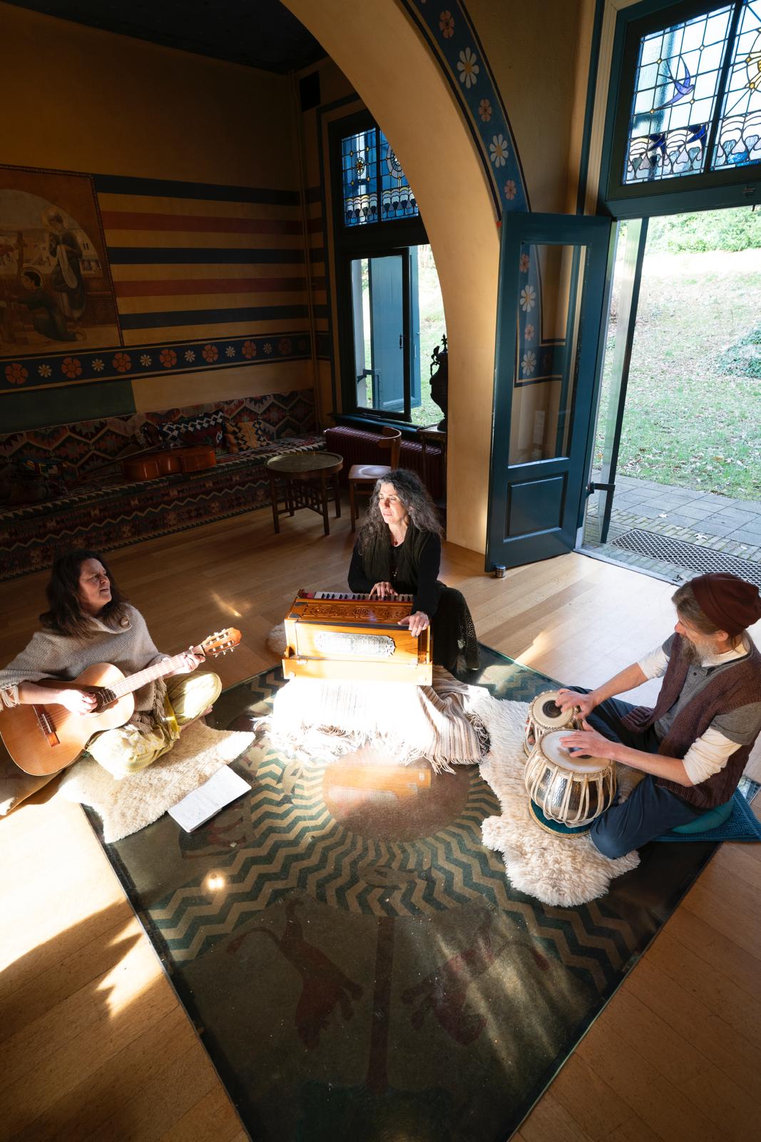 Daarna laten we ons meevoeren door de diepe klanken van mantra’s en bijzondere instrumenten. Het ensemble Deep Dawn Beyond bestaat uit vier muzikanten, die eeuwenoude mantra’s uit de Kundalini yoga tot leven brengen. Met stem, harmonium, tabla, cello, gitaar en Santoor maken ze klanken die je meenemen in diepe verbinding met jezelf en met elkaar. De mantra’s nodigen je uit om mee te zingen, je hart te openen en samen de helende kracht van klank en mantra te ervaren.