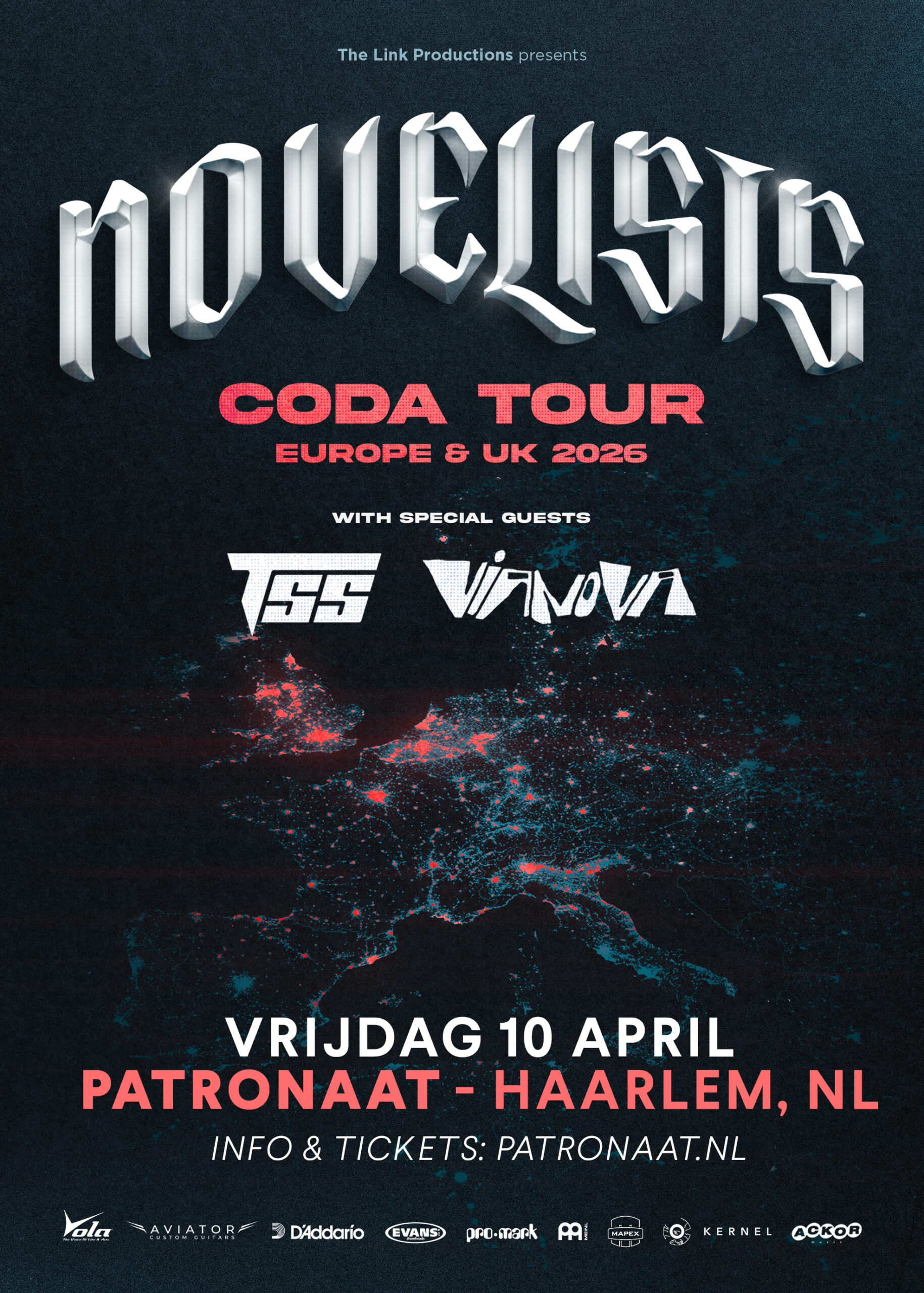 Novelists brengt Franse metalcore met een progressieve inslag: strak en technisch gitaarwerk, sterke hooks en songs die soepel schakelen tussen melodie en agressie. In 2023 kreeg Novelists een nieuw gezicht met vocalist Camille Contreras. De daaropvolgende singles tikten in rap tempo miljoenen streams aan en onderstreepten de frisse koers. Begin 2024 volgde een Europese headlinetour met The Word Alive, Elwood Stray en Ashen—een bevestiging van hun klasse in studio én live. Op vrijdag 10 april staan ze in Patronaat met supports TSS en Vianova. Ben jij erbij?