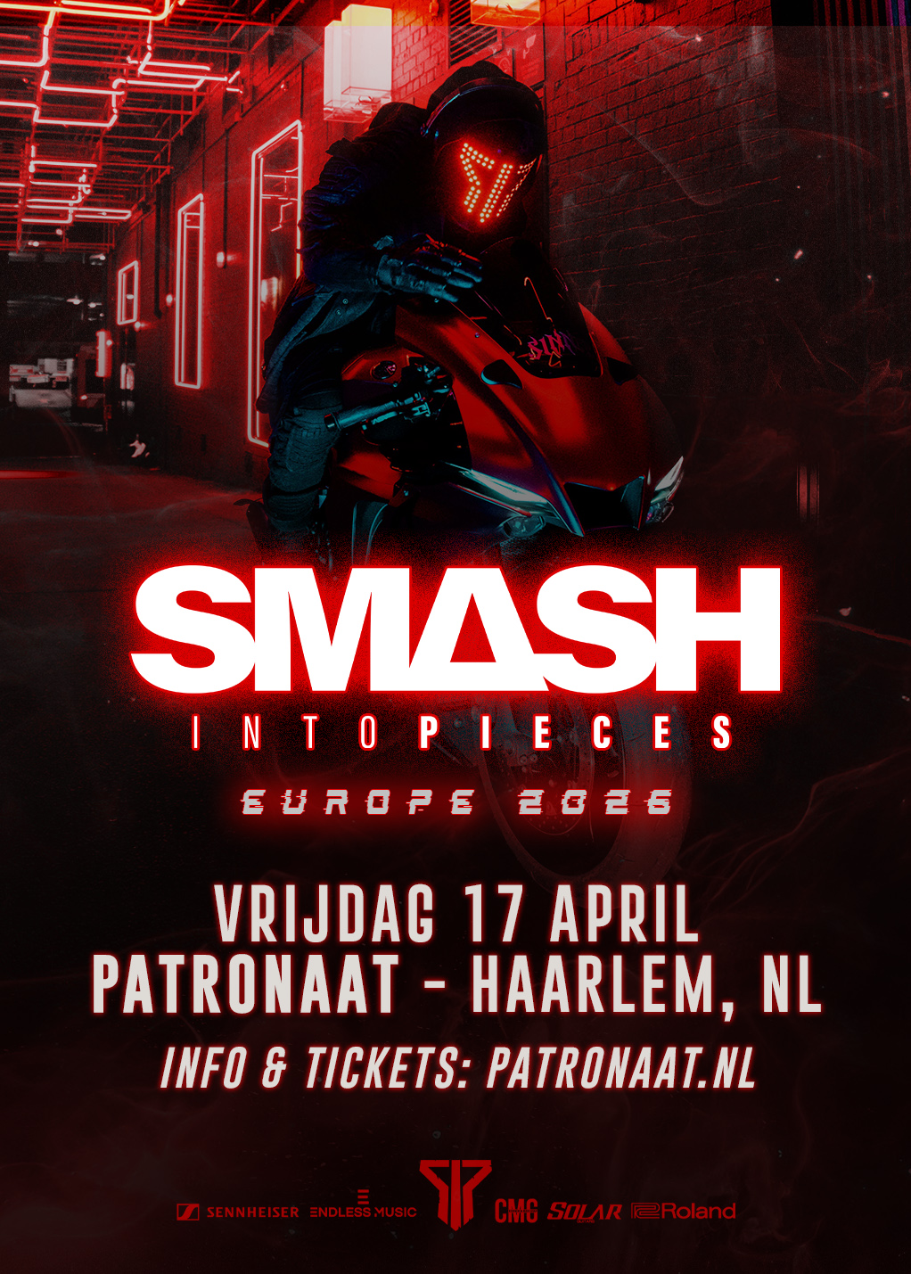 Met 1+ miljard streams en een snel groeiende fanbase hoort Smash Into Pieces bij de grootste rock-exports van Scandinavië. Op vrijdag 17 april staan ze met hun nieuwste wapenfeit ‘ArmaHeaven’ in Patronaat! Aangevoerd door de gemaskerde drummer en frontfiguur APOC koppelt de band futuristische thema’s aan harde hooks, massieve refreinen en visuals die voelen alsof je een film in stapt. Kom dat zien!