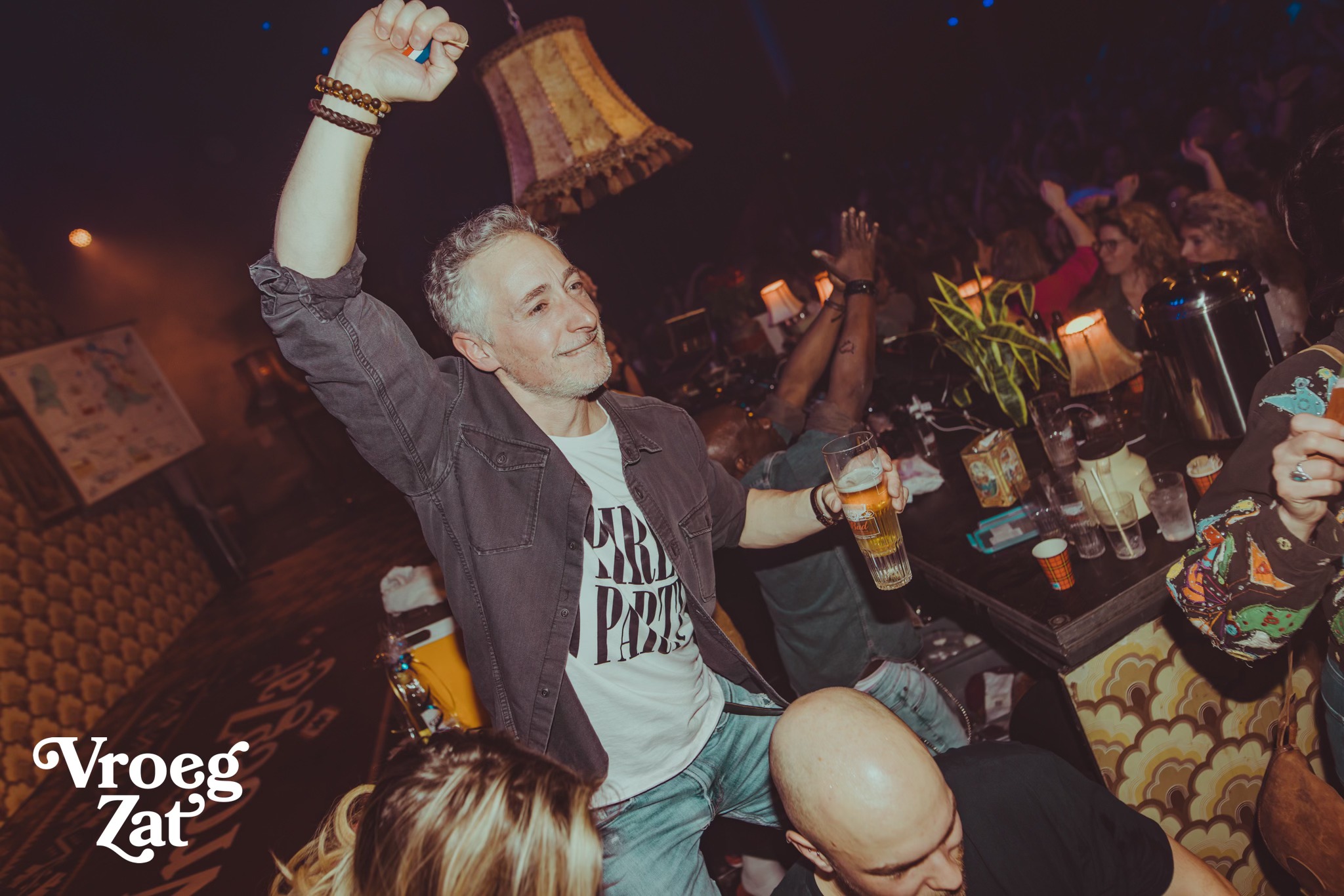 Bij VroegZat geen bloeddoorlopen oogjes in de kleine uurtjes, maar vroeg beginnen en heerlijk op tijd naar huis zodat je de volgende ochtend weer fris voor de dag komt. Van de laatste hits tot vergeten classics en foute pareltjes; hier komen ze allemaal voorbij. Dus regel die oppas en bel je vrienden op; dit uitje is er eentje voor jullie!