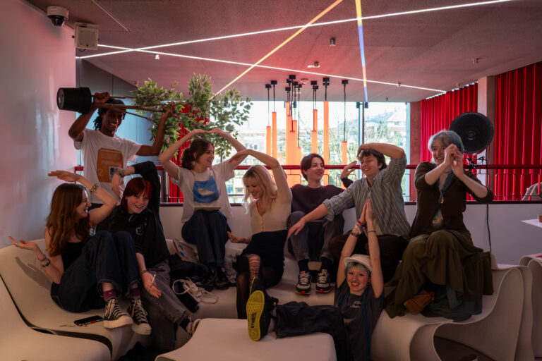 Exposerende jongeren: Jet, Levi, Max, Rosa, Matt, Ties, Dali, Tessa en Lola.